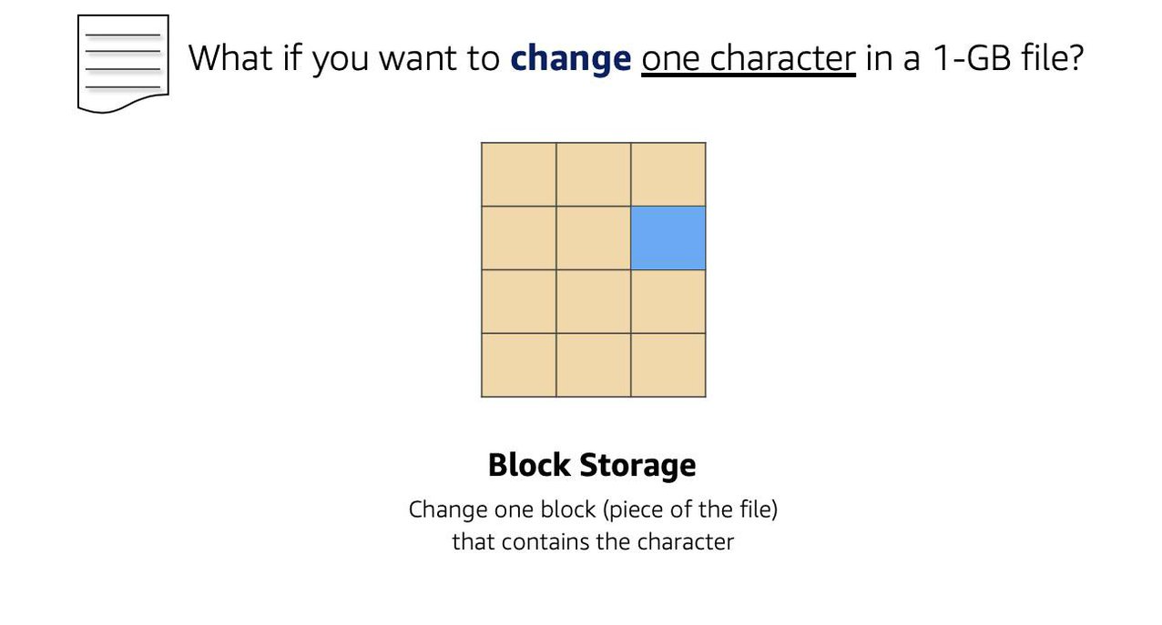 | Edit a portion, you overwrite the whole file | Edit a portion, you overwrite the whole object |