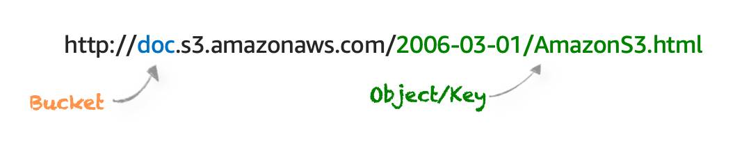 - S3 is object storage: flat structure, objects addressed via unique identifiers.