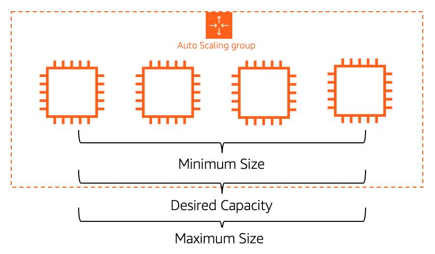 - To specify how many instances EC2 Auto Scaling should launch, configure three capacity settings for the group size: