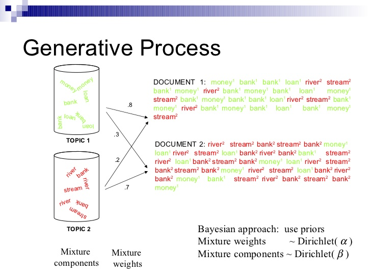 - The original paper of LDA by David Blei - https://www.slideshare.net/hustwj/nicolas-loeff-lda - http://videolectures.net/mlss09uk_blei_tm/ - http://www.cs.columbia.edu/~blei/talks/Blei_ICML_2012.pdf - https://www.quora.com/What-is-an-intuitive-explanation-of-the-Dirichlet-distribution (it compares normal distribution with Dirichlet Distribution) - https://ldabook.com/lda-as-a-generative-model.html - https://ldabook.com/index.html