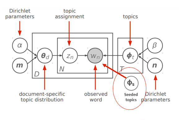 - Nudge the regular LDA to converge faster and better with human-reviewed words list for each topic