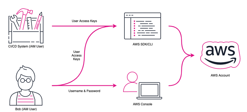 - Email + password → used to sign in to the AWS Management Console.