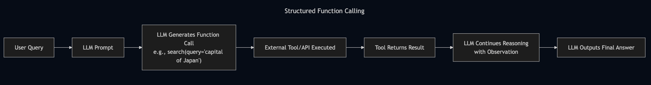 print("💬 Direct Answer:", response.choices[0].message["content"])| Feature | ReAct (Prompt Text) | Function Calling (Structured JSON) |