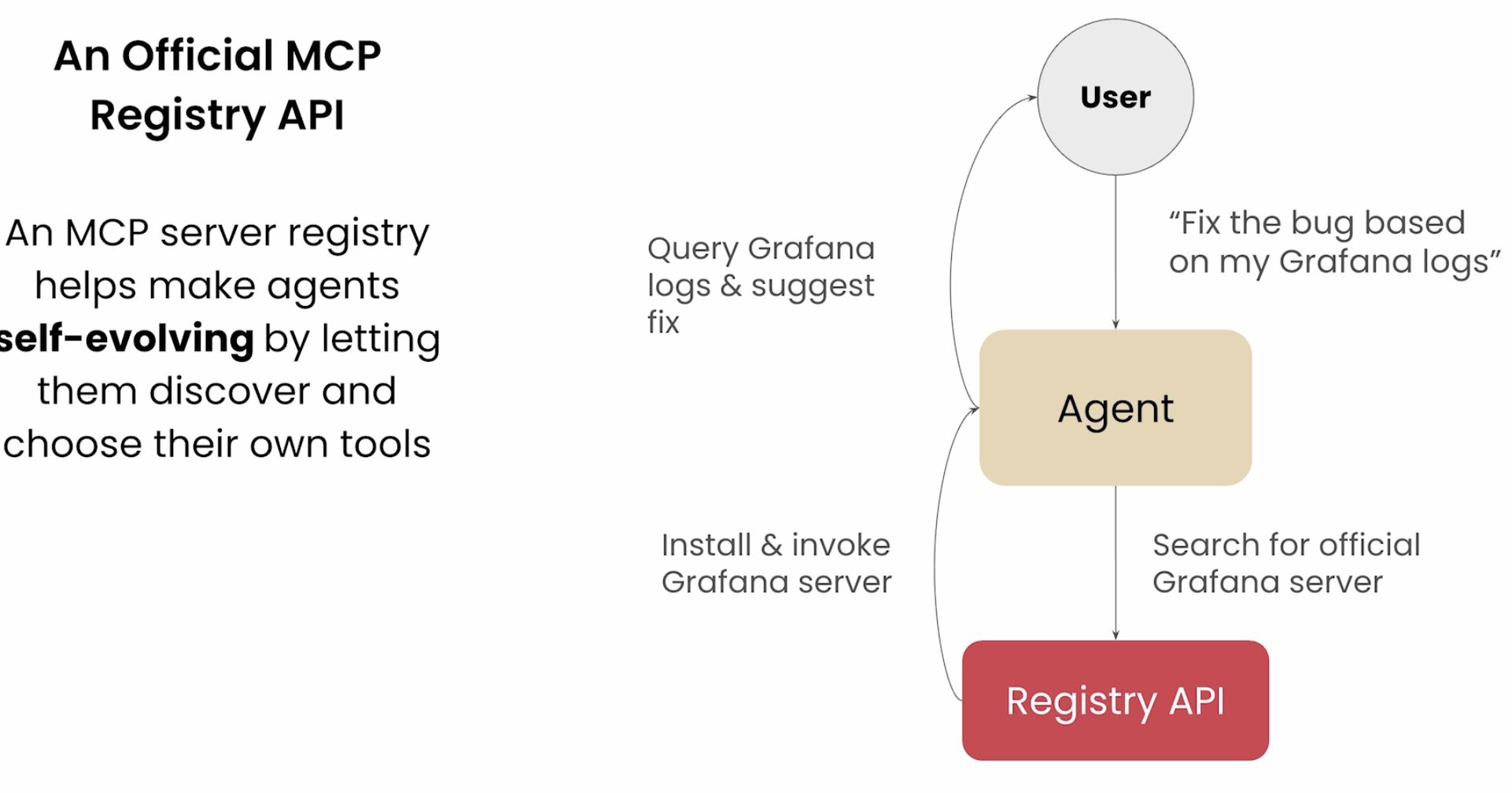 - In fact, we could have an MCP agent that auto-discovers relevant MCP Registry servers, implements and runs them