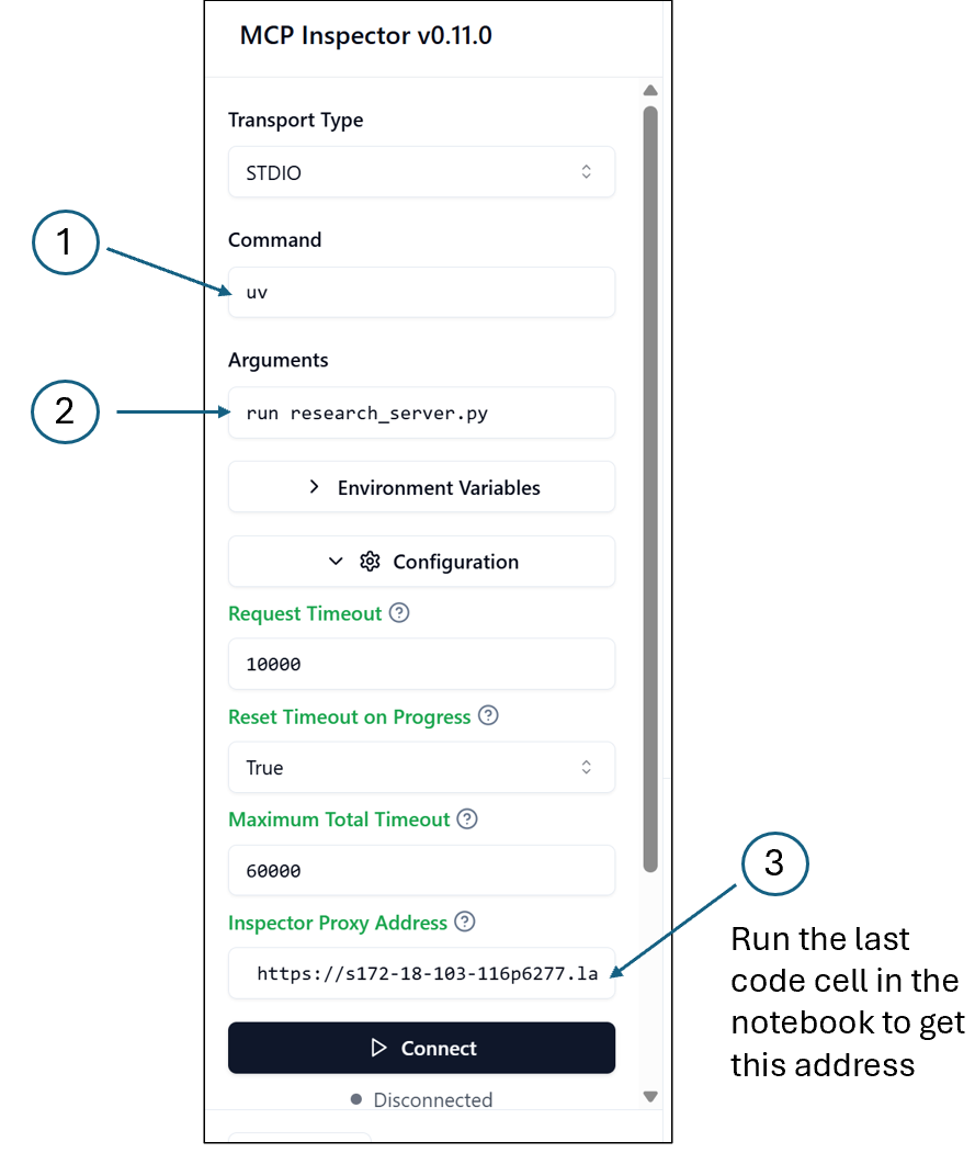 There is an inspector window that can be used to test how the MCP tools are functioning