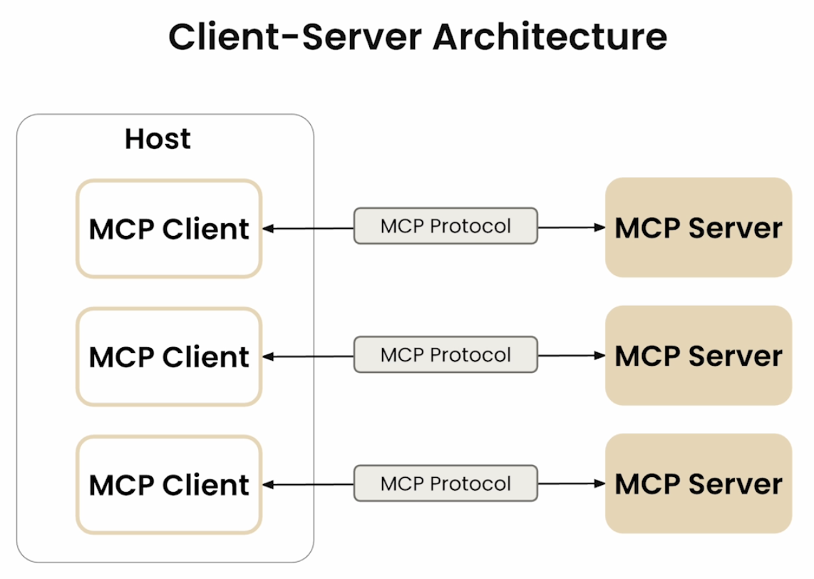 - MCP Client: Programs that maintain 1:1 connections with Servers inside the host application