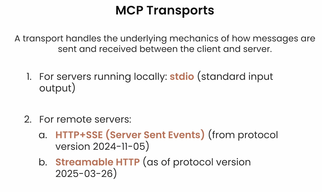 sse transport(which is depcrecated in the upcoming MCP versions).In actual implementaiton, we would use