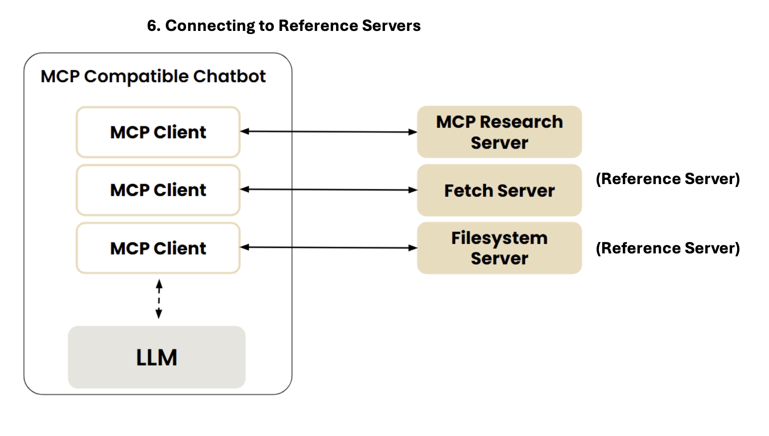 - In this section, we extend the MCP chatbot capabilities by making it connect to any (reference) MCP server