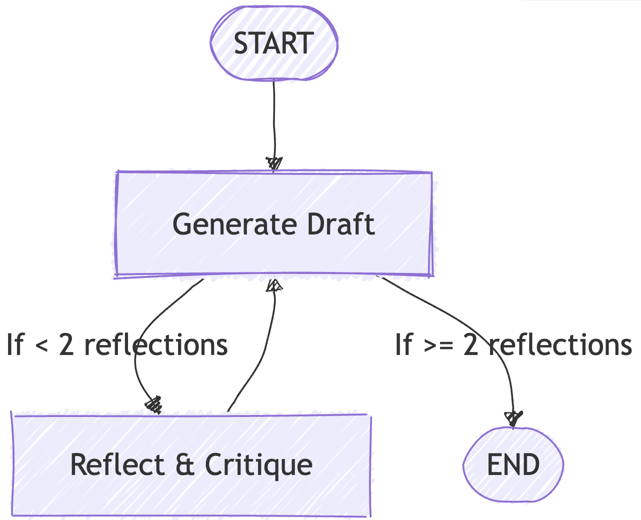 generation_node: Callsgenerateand appends the draft.reflection_node:- Keeps the original user request.